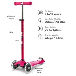 The JD Bug Junior Street Scooter comes with a single lever folding mechanism making it quick and easy to fold up when needed and the handle bar height is also adjustable so it can grow with your child.